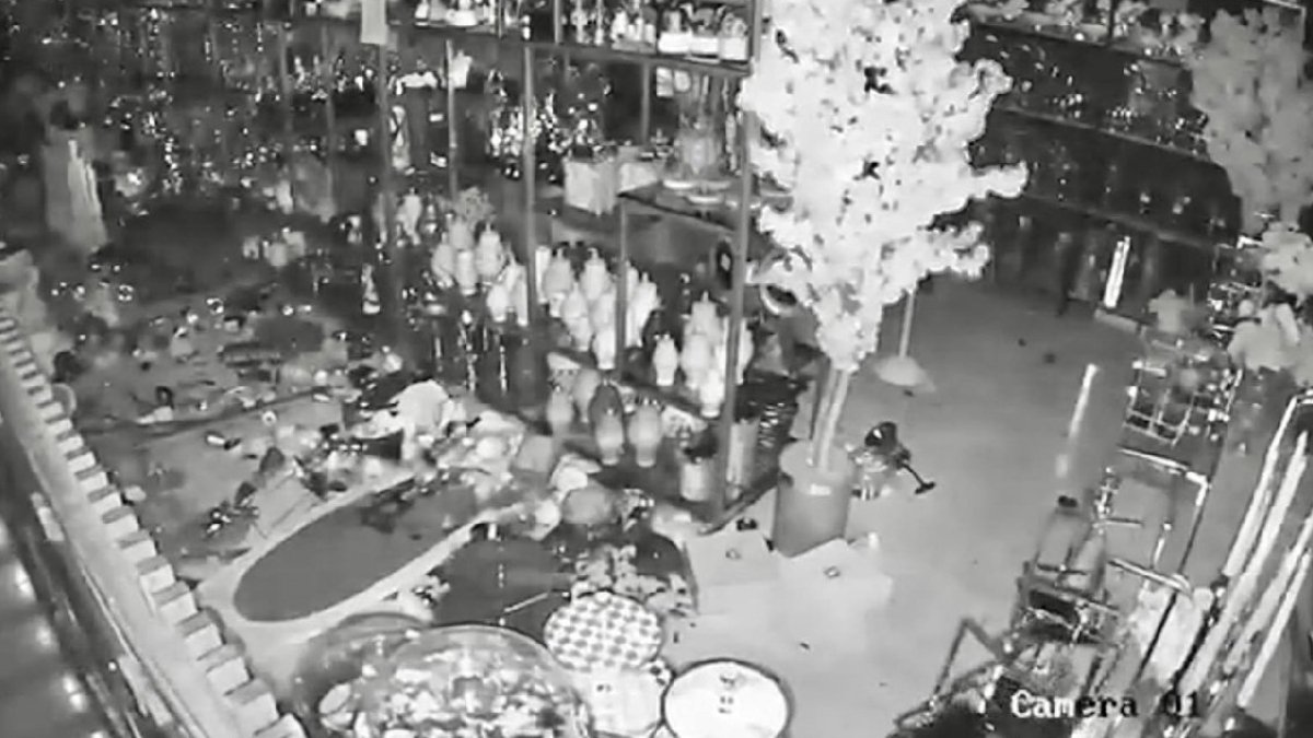 Ürkütücü sesin ardından yaklaşık 1.5 dakika süren depremde mağazada bulunan malzemelerin neredeyse tamamı yere düşüyor.