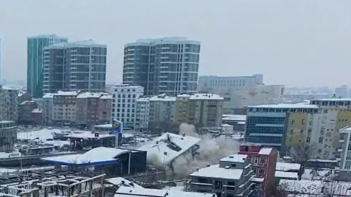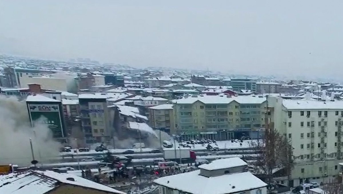 Kahramanmaraş'ın Pazarcık ilçesi merkezli saat 04.17'de, 7.7 büyüklüğünde yaşanan depremin ardından, aynı gün saat 13.24'te Elbistan merkezli 7.6 büyüklüğünde meydana gelen ve Malatya'da da şiddetli hissedilen depremde binaların çökmesi, havada görüntü alan drone ile kaydedildi.