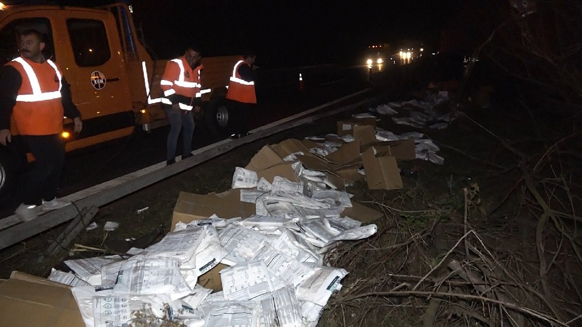 Kaza, gece saatlerinde TEM yolu Kaynaşlı mevkisinde meydana geldi. Deprem bölgesine çocuk bezi, hasta bezi ve hijyen malzemesi taşıyan Hamit Şahin yönetimindeki 06 KFG 83 plakalı TIR, sürücüsünün direksiyon kontrolünü yitirmesi sonucu refüje girdi.