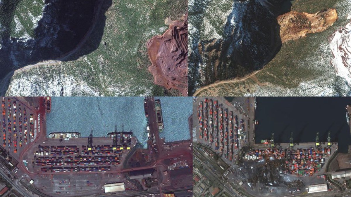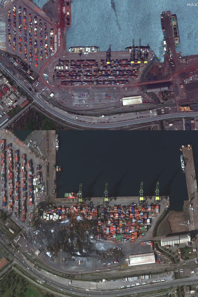 İskenderun Limanı'ndaki yıkım böyle görüntülendi.Bir yangının da meydana geldiği İskenderun limanındaki yıkımın detayları da gözler önüne serildi. 26 Haziran 2022'de çekilen uydu görüntüleri ile yakın zamanda çekilen görüntülerde bölgedeki hasar tespit edildi.