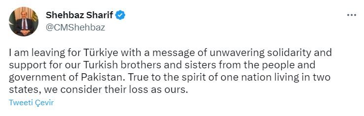 Twitter üzerinden de Türkiye ile dayanışma için bölgeye gideceğini belirten Şerif'in Ankara'da Cumhurbaşkanı Erdoğan ile görüşmesi de beklenirken Şerif'in açıklamalarına Pakistan halkı büyük tepki gösterdi.