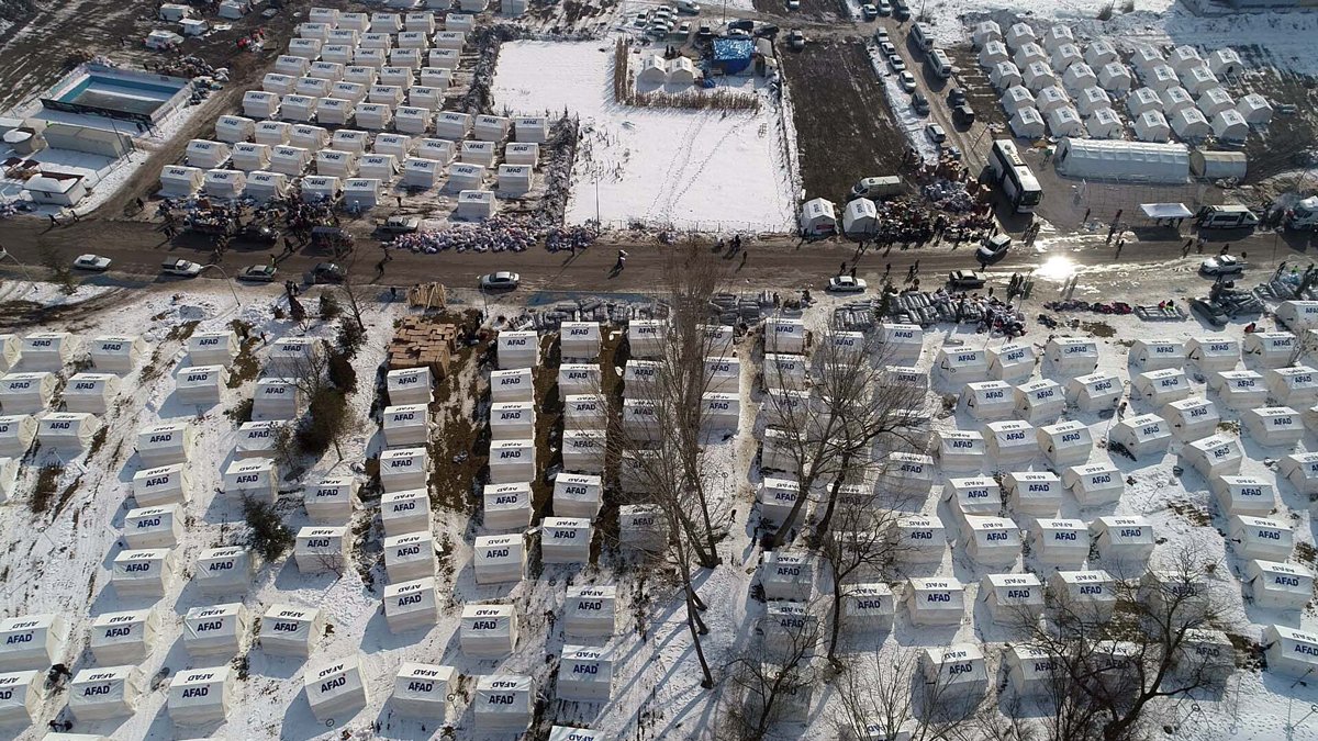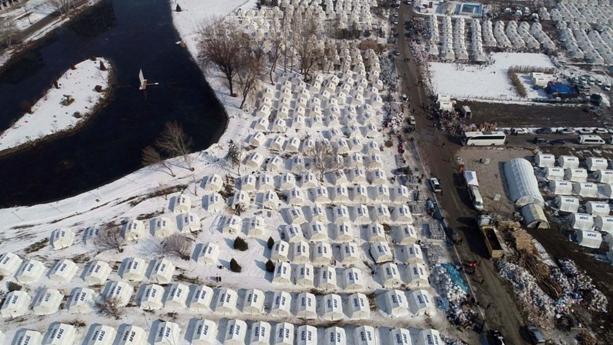Pınarbaşı Mahallesine kurulan 700 adet çadır drone ile görüntülendi. Çadır kentte yaşayan Fethiye Kısa, "Deprem çok kötüydü uykumuz arasında yakalandık. Öleceğimizi zannettik. Çok kötü sarsıldık. Deprem durduktan sonra dışarıya çıktık. Öğlen yeniden deprem oldu, o da çok felaketti. Bizim için kabuslu günler oldu. Çok şükür şimdi iyiyiz. Yardımlarımız geldi. Çadırlarımız kuruldu. Allah devletimizden ve milletimizden razı olsun. İlk gün çok zorluk çektik ama şimdi her şey var. Herkes birlik oldu" diye konuştu.