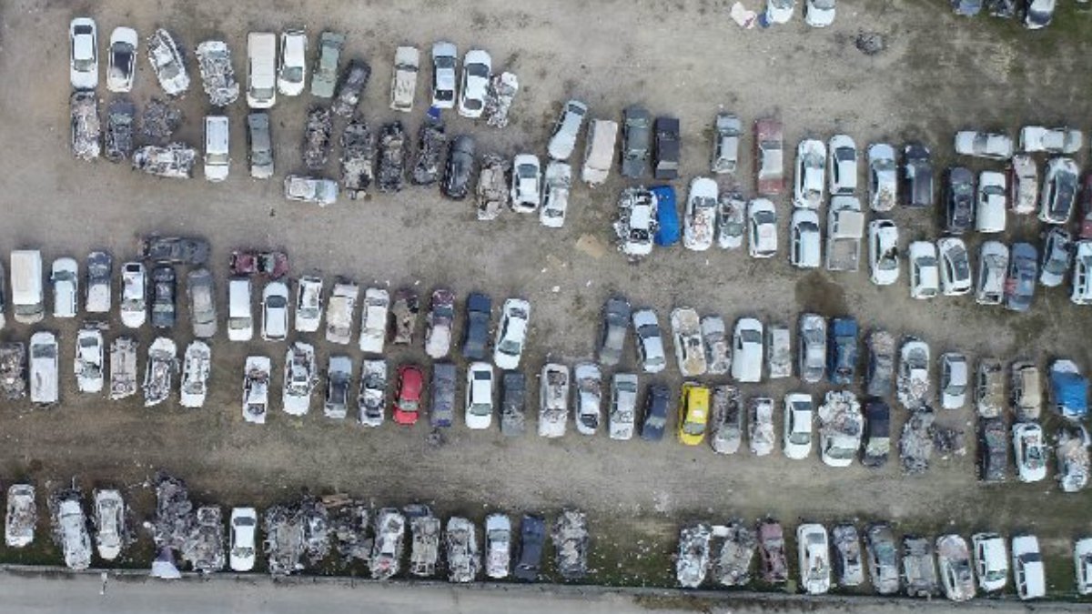 Toplanan araçların çekildiği otoparklardaki manzara ise depremin yıkım etkisini gösterdi. Getirilen araçlardan bazılarının tamamen ezildiği, üst üste kat yapıldığı ve otoparkta toplanan araç sayısının fazlalığı havadan görüntülendi.
