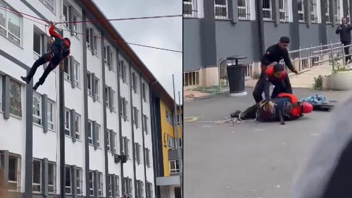Olay 14.30 sıralarında Bakırköy Anadolu Lisesi'nde meydana geldi. AFAD tarafından okulda deprem tatbikatı yapıldığı sırada, 3'üncü kattan depremzede kurtaran AFAD görevlisi, bağlı olduğu halatın makaran çıkmasıyla yüksekten düştü.