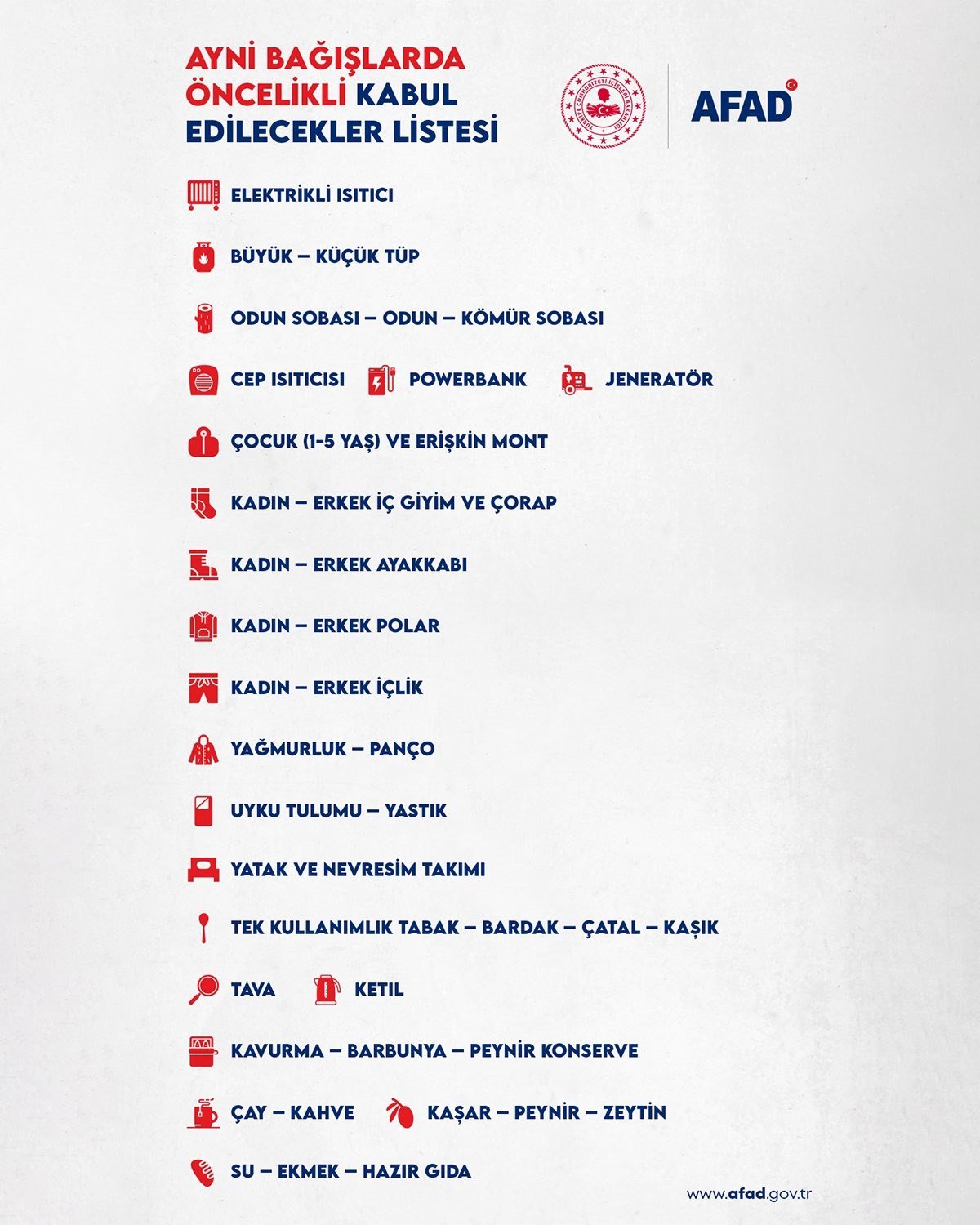 İşte AFAD’ın yayımladığı Öncelikli İhtiyaç Listesi