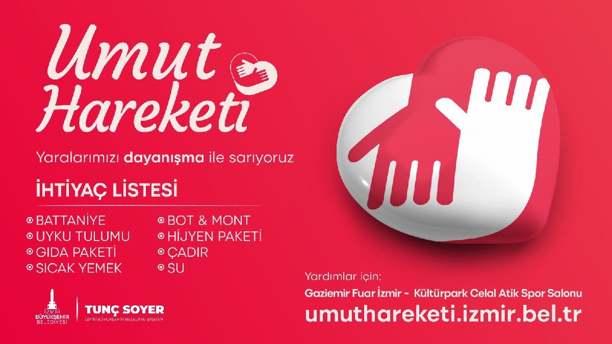 İzmir Büyükşehir Belediyesi tarafından yürütülen yardım kampanyası için çağrılarda bulunulurken Barınma, ısınma, gıda ve hijyen malzemelerinin önemine vurgu yapılıyor.