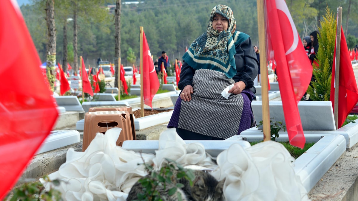 Depremin yıl dönümünde Ayşe Aykır, oğlu, gelini ve 2 torununu mezarları başında andı. Yaşadığı süreci anlatan Aykır, "Depremde oğlum, gelinim ve 2 torunumu kaybettim. Biz depreme Karamanlı Mahallesi'ndeki evimizde yakalandık. Evimiz az hasarlıydı, dışarı çıktık. Çocuklarımı depremin 3'üncü gününde bulduk. Binaları yandı. Cenazeleri bulduğumuza şükrettik. Mezarları burada, çok şükür. Torunumun mezarında bulunan gelinliği, gelinimin annesi koydu" diye konuştu.