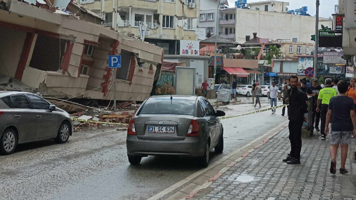 Hatay'ın Samandağ ilçesinde, Kahramanmaraş merkezli 6 Şubat'taki depremlerde hasar gören iki katlı binanın kendiliğinden çökmesi sonucu 2 otomobilde hasar oluştu.