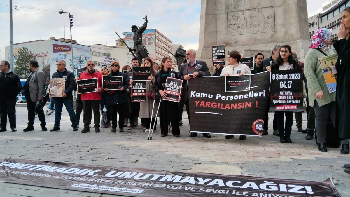Kahramanmaraş merkezli depremde yakınlarını kaybetmiş aileler Ankara Ulus Meydanı'nda eylem yaptı.