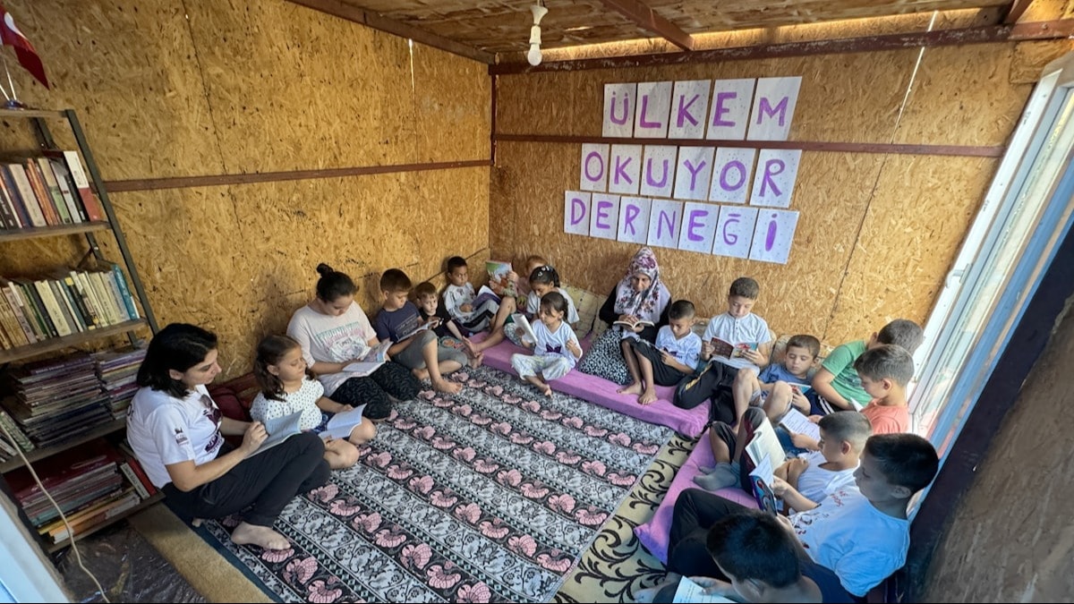 “Havva hanım o süreçte bize kitap getirdi. Çocuklarımla birlikte ben de okumaya başladım. Deprem sonrası evimiz yıkılınca bir kulübe kurduk, içine minderler koyduk ve önce kendim okuyarak çocuklarıma örnek oldum. Daha sonra çocuklarım, ardından da mahalle çocukları bu kulübede kitap okumaya başladı. Ülkem Okuyor Derneği de sağ olsun bize kitap desteği sağladı. Çocuklar okuldan çıktıktan sonra burada kitap okuma etkinliği düzenliyoruz, ardından sırayla okudukları kitapları anlatıyorlar. Hem ben hem de çocuklar bundan büyük keyif alıyoruz.”
