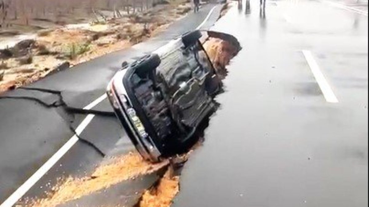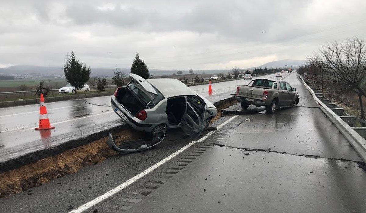 .Yolda çift taraflı olarak oluşan devası yarıklar vatandaşların çektiği görüntülerle sosyal medyada paylaşılarak bölgeye yiyecek ve içecek yardımı istendi.