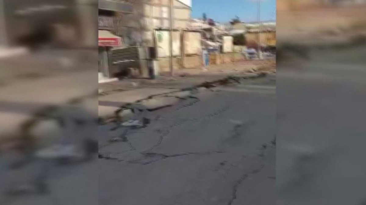 Kahramanmaraş merkezli depremlerde Adıyaman'ın Gölbaşı ilçesinde yolda yarık oluşması güvenlik kamerasına yansıdı.