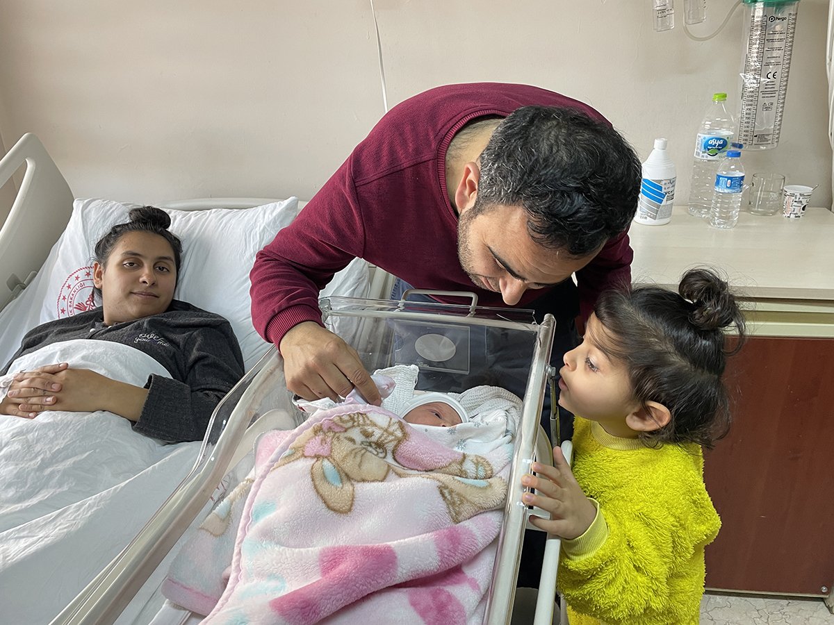 Hatay'daki evleri depremde hasar gören Asena (24) ve Okan Topaloğlu (33) çifti, yakınlarının yardımıyla Bartın'a ulaştı. Hamile olan Asena Topaloğlu, bebeğini Bartın Kadın ve Çocuk Hastalıkları Hastanesinde dünyaya getirdi.