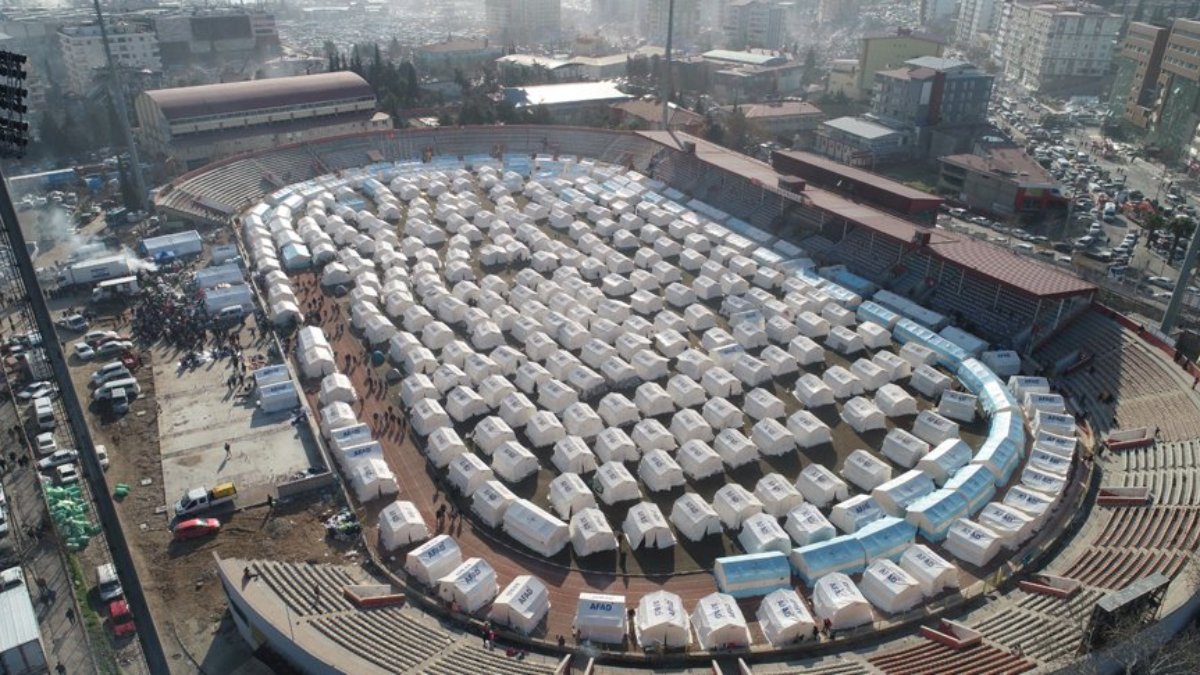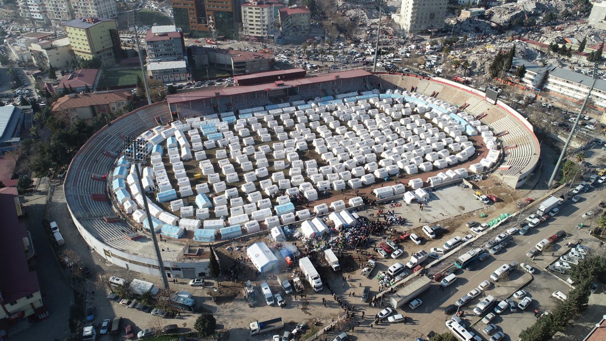 Bölgede depremzedeler için çadır kentler de kuruluyor. Kentte ilk olarak 12 Şubat Stadyumu'na çadır kent kuruldu.