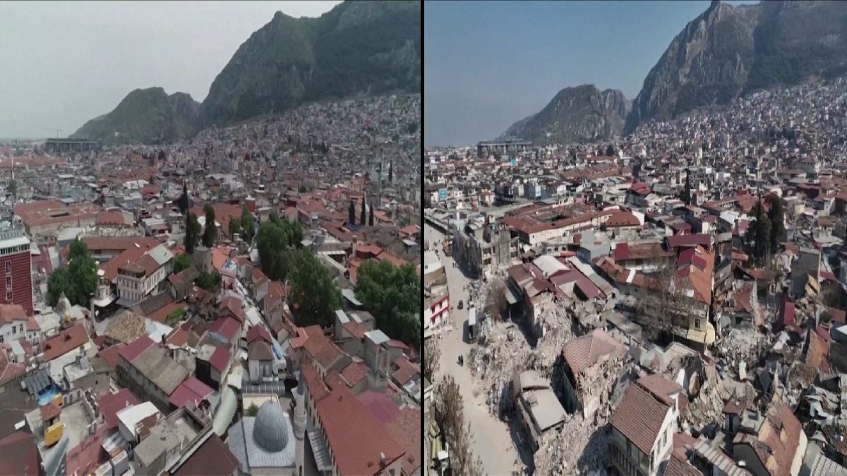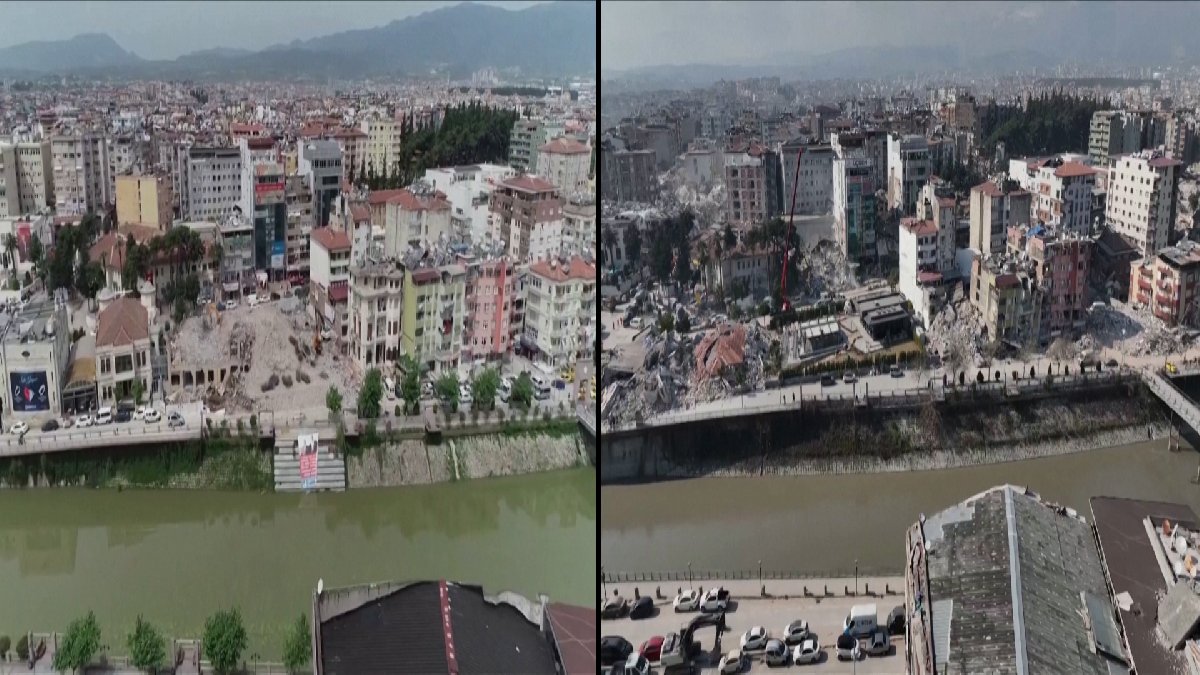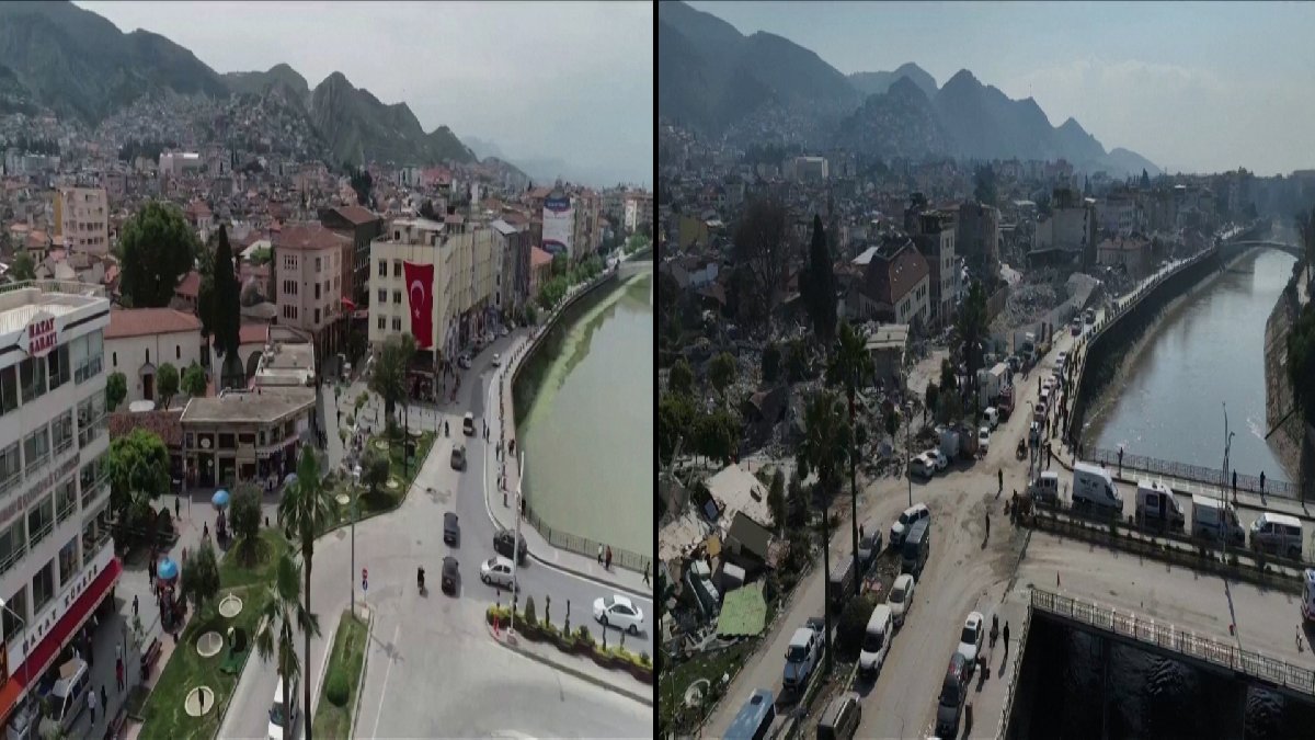 İngiltere merkezli haber ajansı Reuters, 2018'de Hatay'da drone ile çekilmiş görüntüler ile 6 Şubat'taki korkunç depremden sonra çekilmiş görüntüleri yan yana getirerek paylaştı.