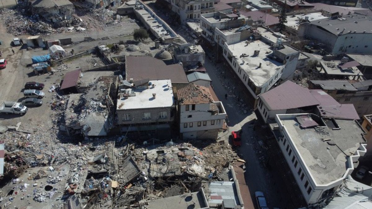 Havadan çekilen görüntülerde yapılardaki yıkım depremin etkisini gözler önüne seriyor. (AA)