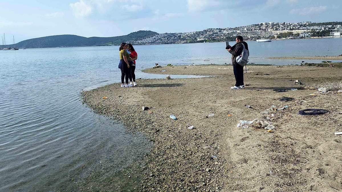 Aynı Gümbet plajında iki gündür deniz suyunun 8-15 metre civarında geri çekilmesi, gel-git olaylarının artması vatandaşı tedirgin etti. Koyda geri çekilmeler nedeniyle adacıklar oluştu, tekneler karaya oturdu. Oluşan adacıkları gören vatandaşlar hatıra fotoğrafı çektirdi.
