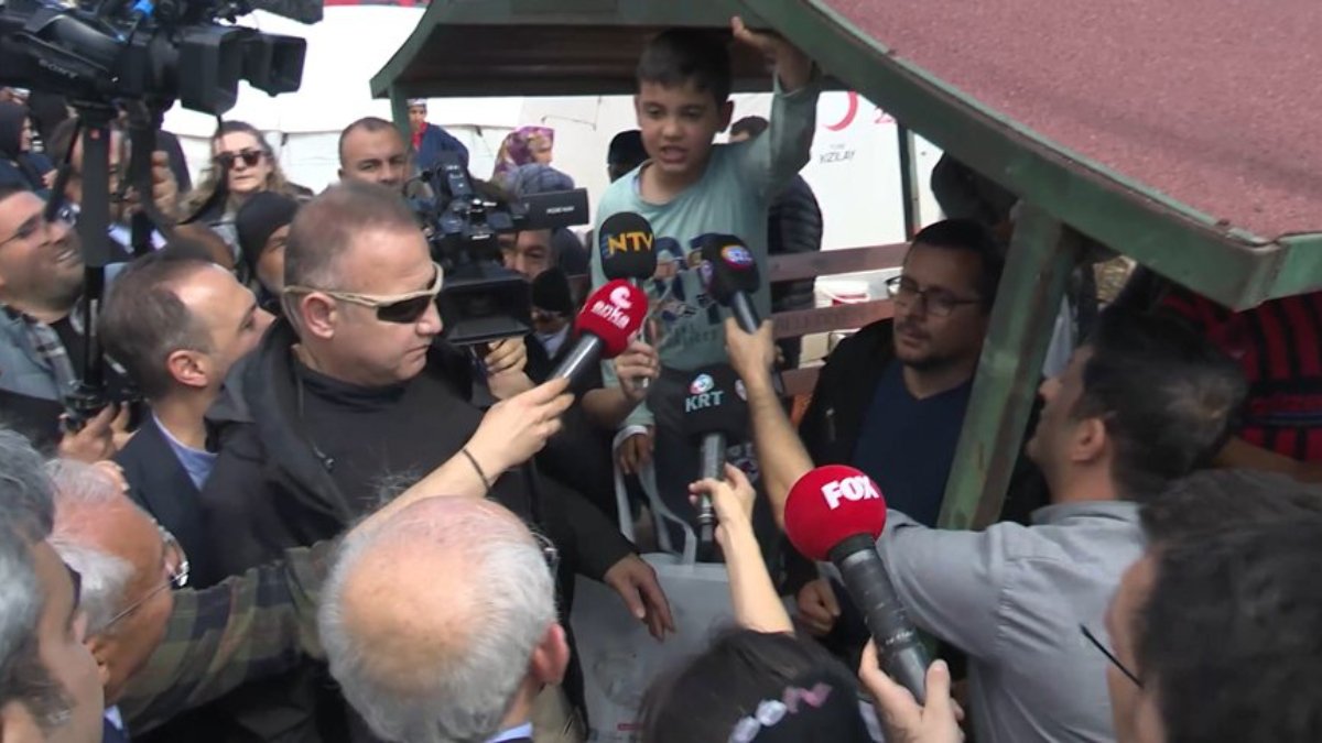 Bir depremzede çocuk da kalabalık içerisinde, “Cumhurbaşkanım, bir şey söyleyebilir miyim” diyerek, Kılıçdaroğlu ve İmamoğlu’nun dikkatini çekmeyi başardı. Minik çocuğa, “Söyle” diyen Kılıçdaroğlu, depremzede öğrenciden, “Ders çalışmamız için bir şeyler getirebilecek misiniz” talebini aldı.