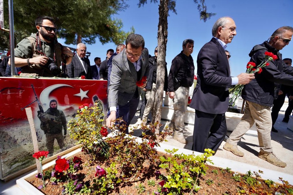 Kılıçdaroğlu ve beraberindeki heyetin Gaziantep’teki ilk durağı, deprem felaketinde hayatını kaybedenlerin defnedildiği, Şahinbey ilçesindeki Yeşilkent Mezarlığı oldu. Heyet, edilen duaların ardından aynı bölgede bulunan Yeşilkent Şehitliği’ni de ziyaret etti. Şehitlerin aziz ruhları için dualar eden Kılıçdaroğlu ve beraberindeki heyet, kabristanlara karanfil bıraktı.