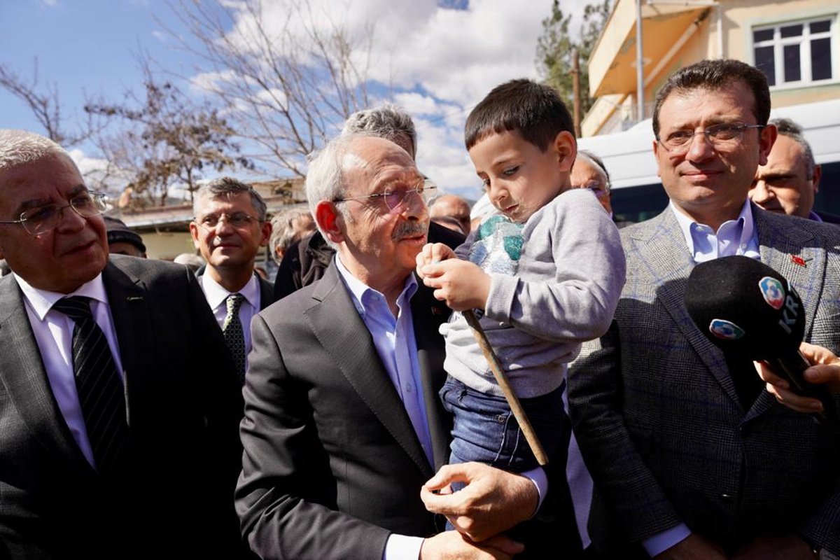 Millet İttifakı Cumhurbaşkanı adayı ve CHP Genel Başkanı Kemal Kılıçdaroğlu, deprem bölgesini beşinci kez ziyaret etti. Kılıçdaroğlu’na Gaziantep ziyaretinde; CHP Grup Başkanvekili Özgür Özel, CHP Genel Başkan Yardımcıları Seyit Torun, Ali Öztunç, İstanbul Büyükşehir Belediye (İBB) Başkanı Ekrem İmamoğlu ile Antalya Büyükşehir Belediye Başkanı Muhittin Böcek eşlik etti.