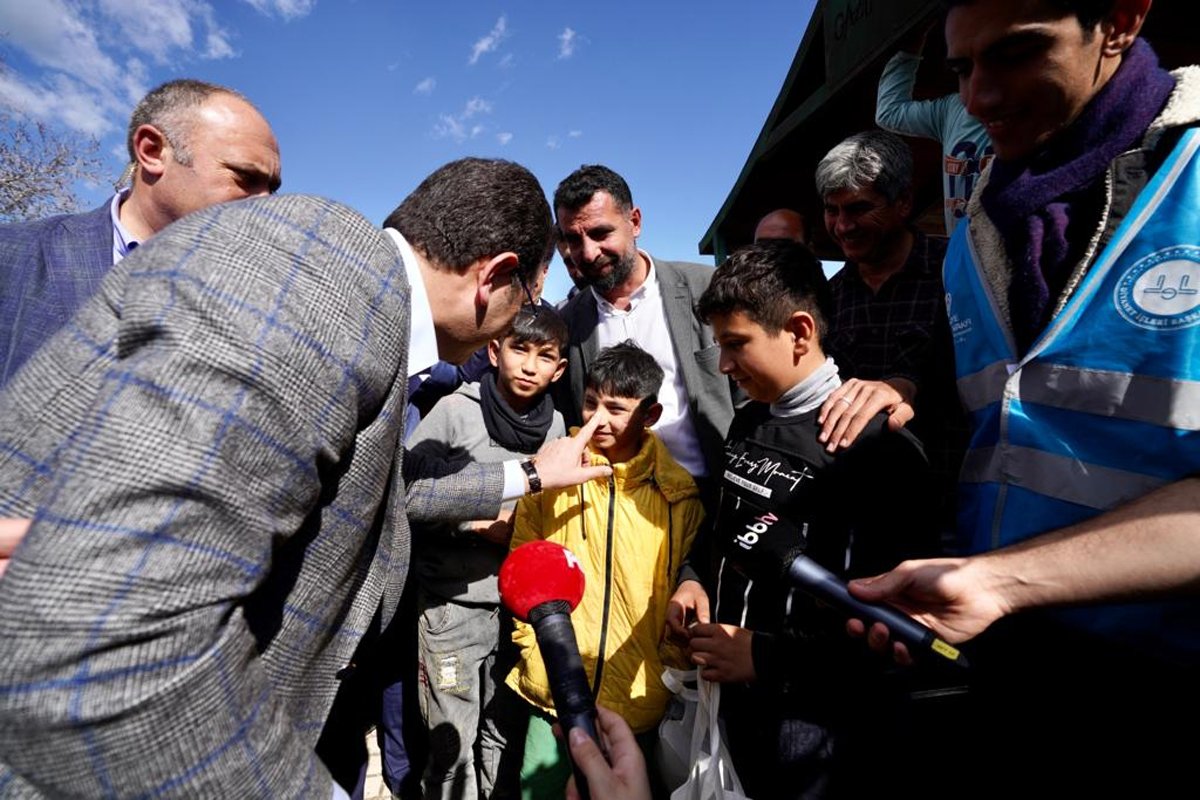 Bir başka depremzede çocuk grubu da İmamoğlu’ndan top oynamak için stat talebinde bulundu. İmamoğlu’nun çocuklara yanıtı, “Onu daha sonra ama şimdi olmaz. Önce evler yapılacak, tamam mı? Ama size burada, oyun yapabileceğiniz yerler yollayacağız böyle küçük. Bir de top, eşofman vesaire yollayacağız tamam mı aslanım. Bu hafta gelecek size” oldu.