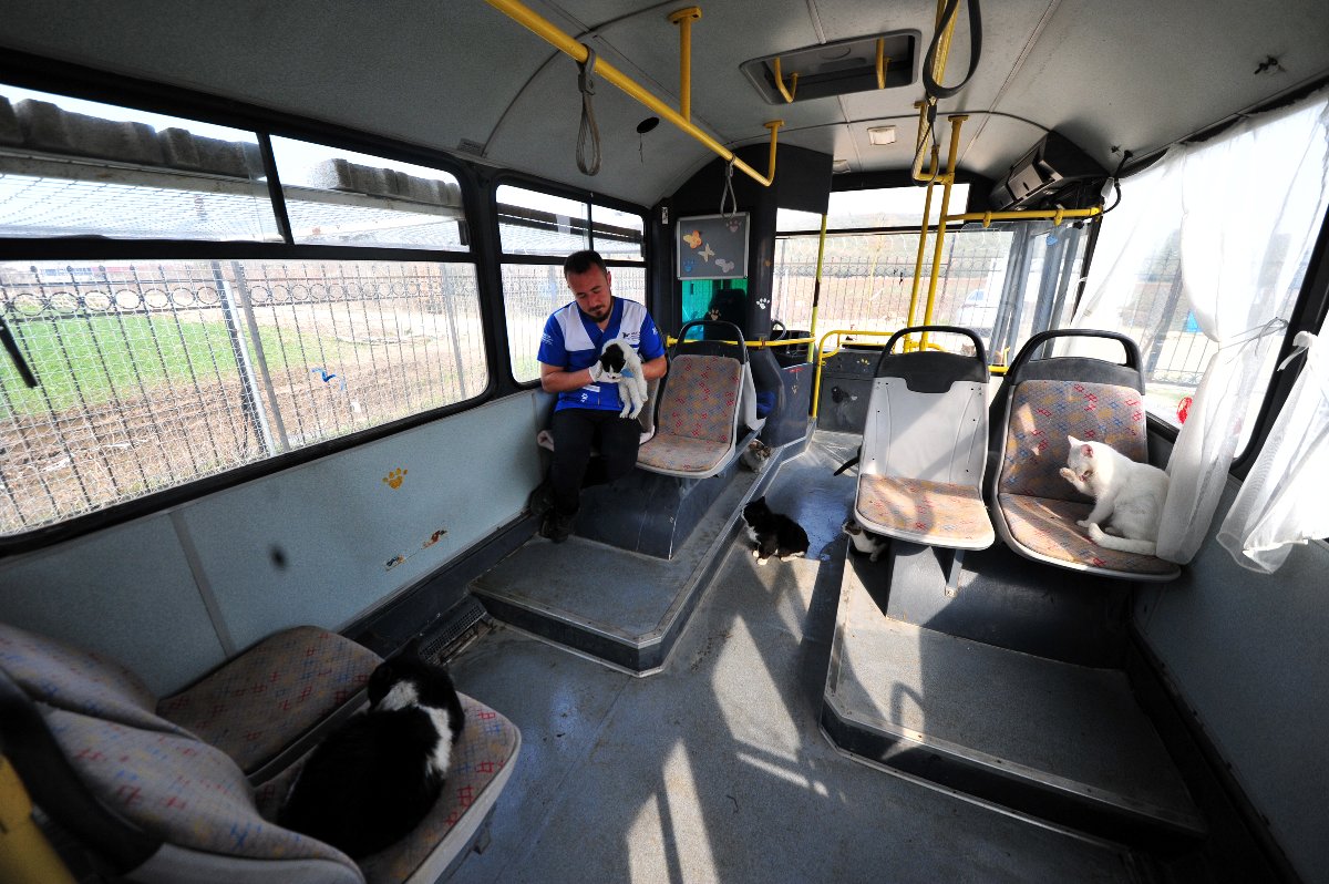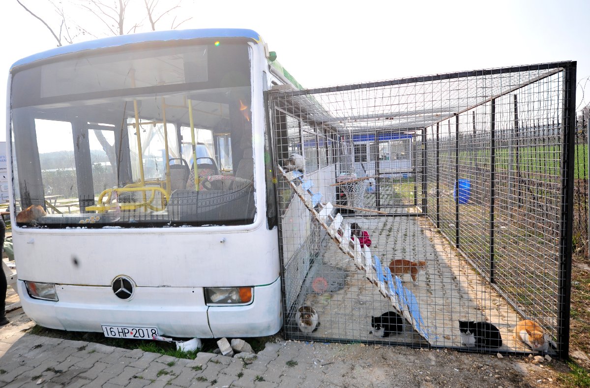 50 kedi için Nilüfer ilçesindeki Emekli Hayvanlar Çiftliği'nde kedi kulübesi oluşturuldu. Bahçede bulunan eski bir halk otobüsünü, kedi yuvasına dönüştüren HAYTAP yetkilileri, depremzede kedilere burada bakmaya başladı.