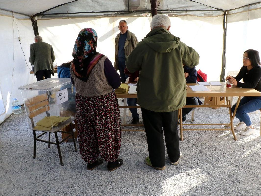 Denizli'nin Acıpayam ilçesinde geçen hafta meydana gelen 5,5 büyüklüğündeki depremde etkilenen bazı mahallelerde vatandaşlar, kurulan çadırlarda oy kullanıyor.
