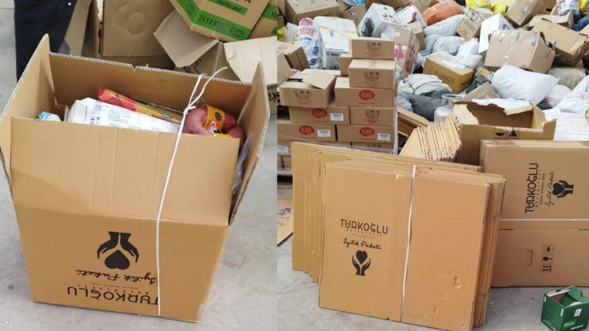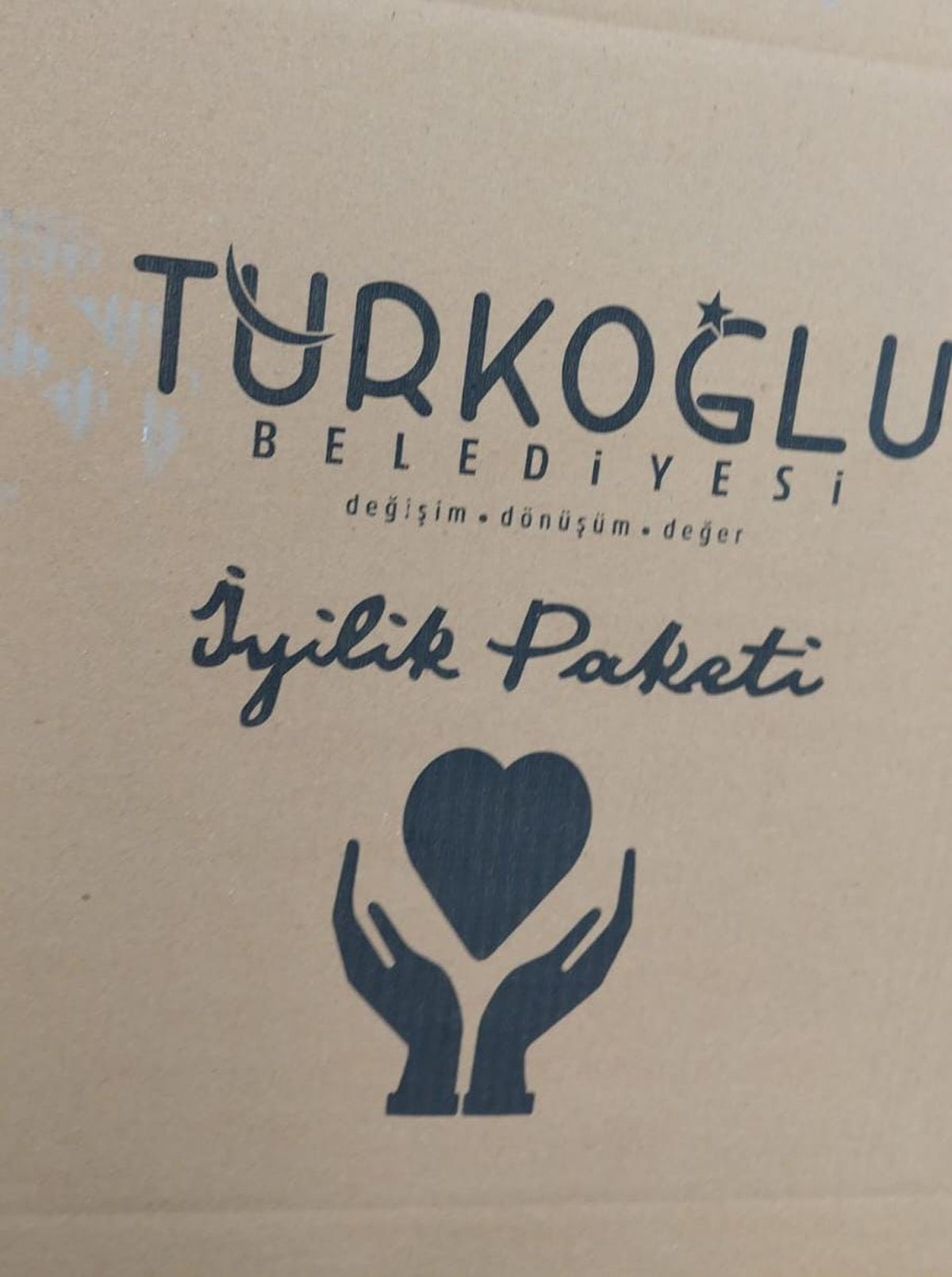 Hazırlatılan boş kolilerin üstünde “Türkoğlu Belediyesi ve “İyilik paketi” yazıları yer alıyor. Ayrıca kolilerin üstünde belediye yönetiminin propaganda sloganı olan “Dönüşüm, değişim, değer” ifadeleri yazıyor.