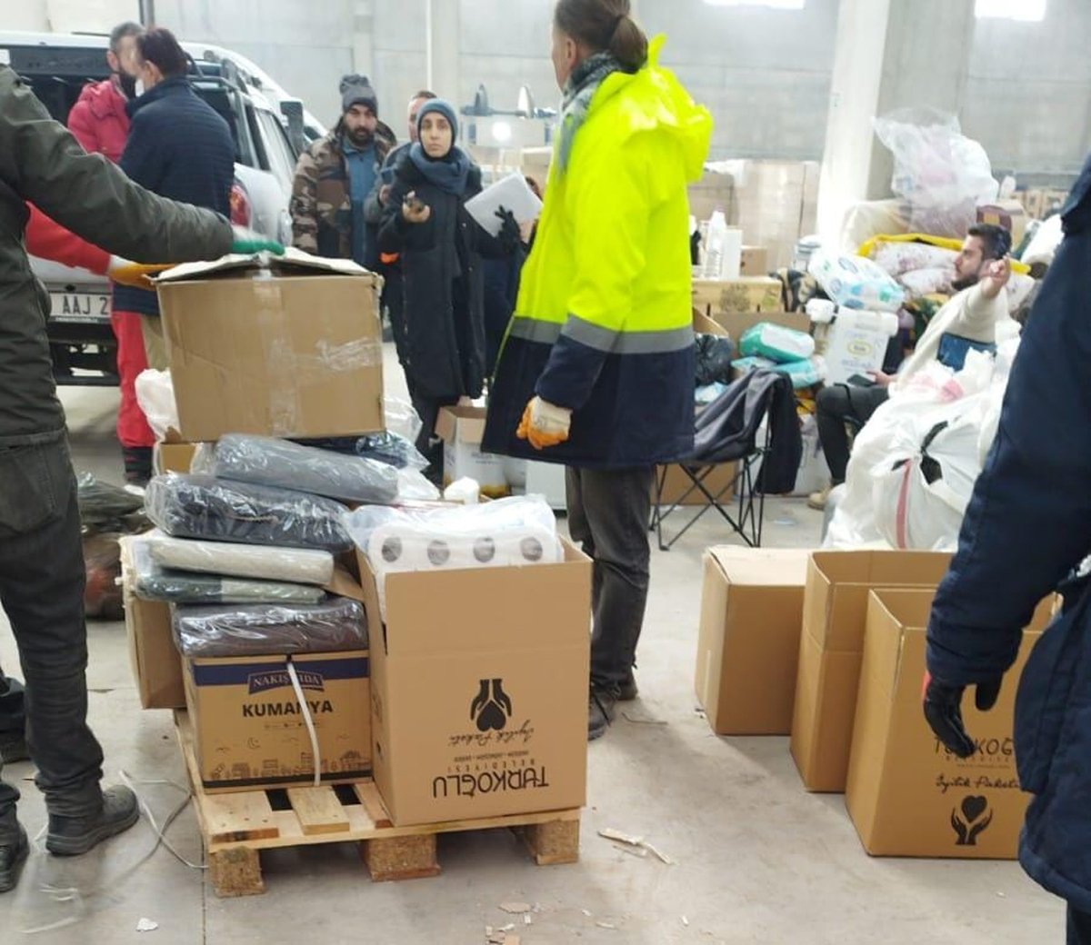 Gıda, kıyafet, battaniye ve birçok araç gereçten oluşan on binlerce yardım malzemesi Türkoğlu Organize Sanayi Merkezi’ndeki depoda toplanarak ihtiyaç sahibi depremzedelere iletiliyor.