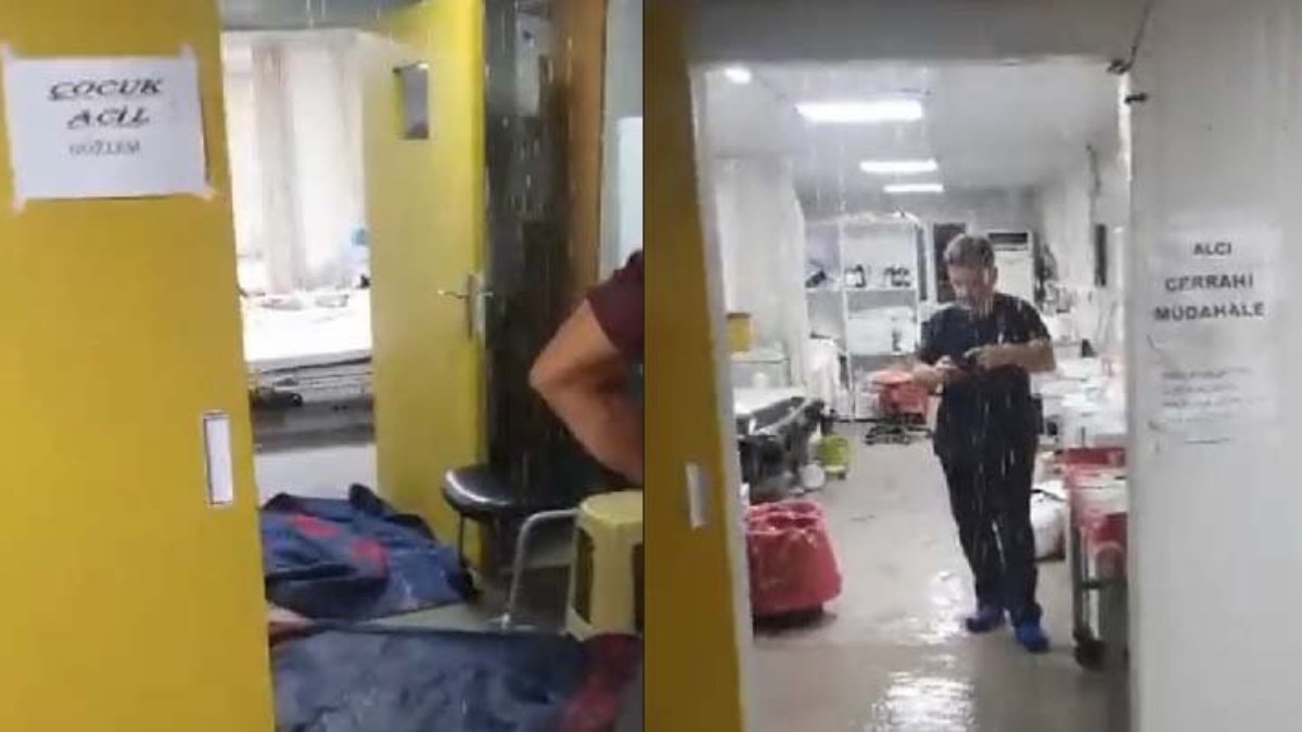 Yağmur suları hastaneye doldu. Hürriyet Sağlık Sen Genel Başkan Yardımcısı Serdar Kahraman Sağlık Bakanı Fahrettin Koca’yı sosyal medyadan etiketleyerek; “Bu hususla ilgili bir çözümünüz var mıdır?” diye sordu.