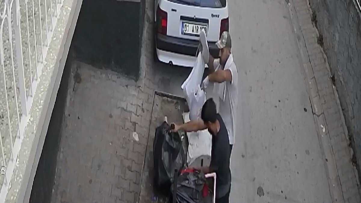 Şüpheliler, evdeki çamaşır ve bulaşık makinesi, televizyon, ankastre ocak, elektrikli süpürge, porselen yemek takımı, dizüstü ve masaüstü bilgisayarı farklı tarihlerde çalıp, seyyar satış arabasına yükleyerek sokaktan ayrıldı. O anlar sokaktaki bir güvenlik kamerasına yansıdı.