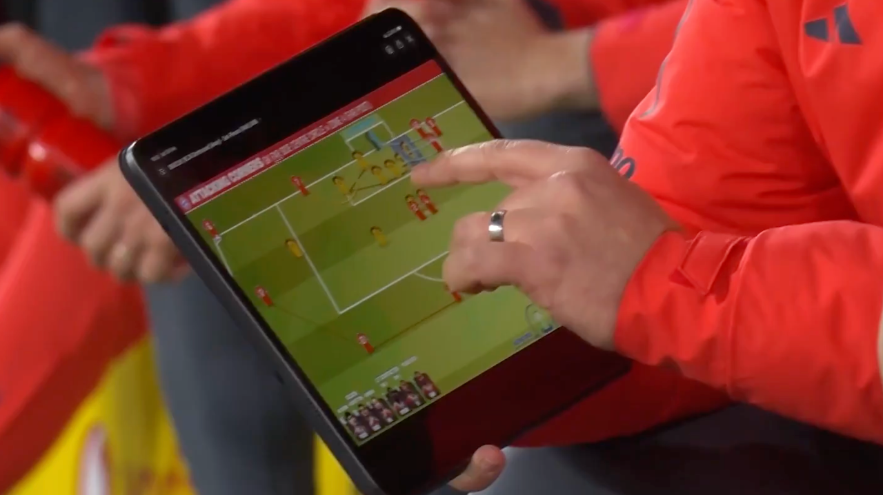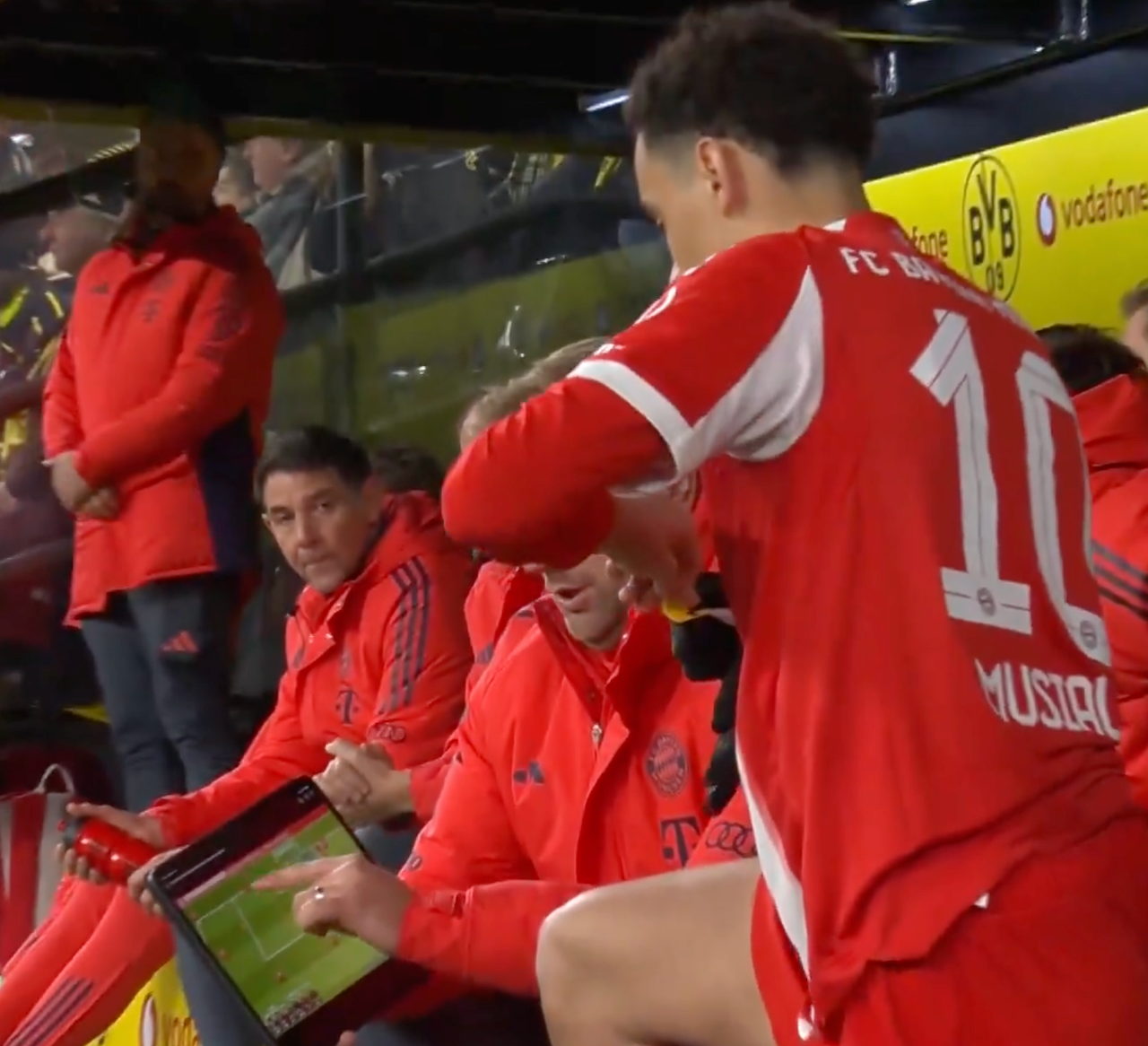 Maçın en çok konuşulan görüntüsü, Bayern Münih'in ekranlara yansıyan taktik tahtası oldu. Jamal Musiala'ya oyuna girmeden önce tabletten duran top organizasyonlarında ne yapması gerektiği gösterildi. Bu görüntüler sosyal medyada kısa sürede gündem oldu.