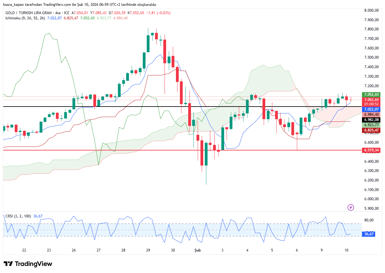 Gram altın, ons altındaki yatay seyir ve dolar/TL kurundaki sakin seyrin etkisiyle kritik yatay bir seyir sergiliyor. Gram altın dün akşam seansında 6 bin 982 lira seviyesine geriledikten sonra, yeniden 7 bin liranın üstüne çıktı. Gram altın bugün sabah seansında 07.55'te 7 bin 50 lirada bulunuyor.