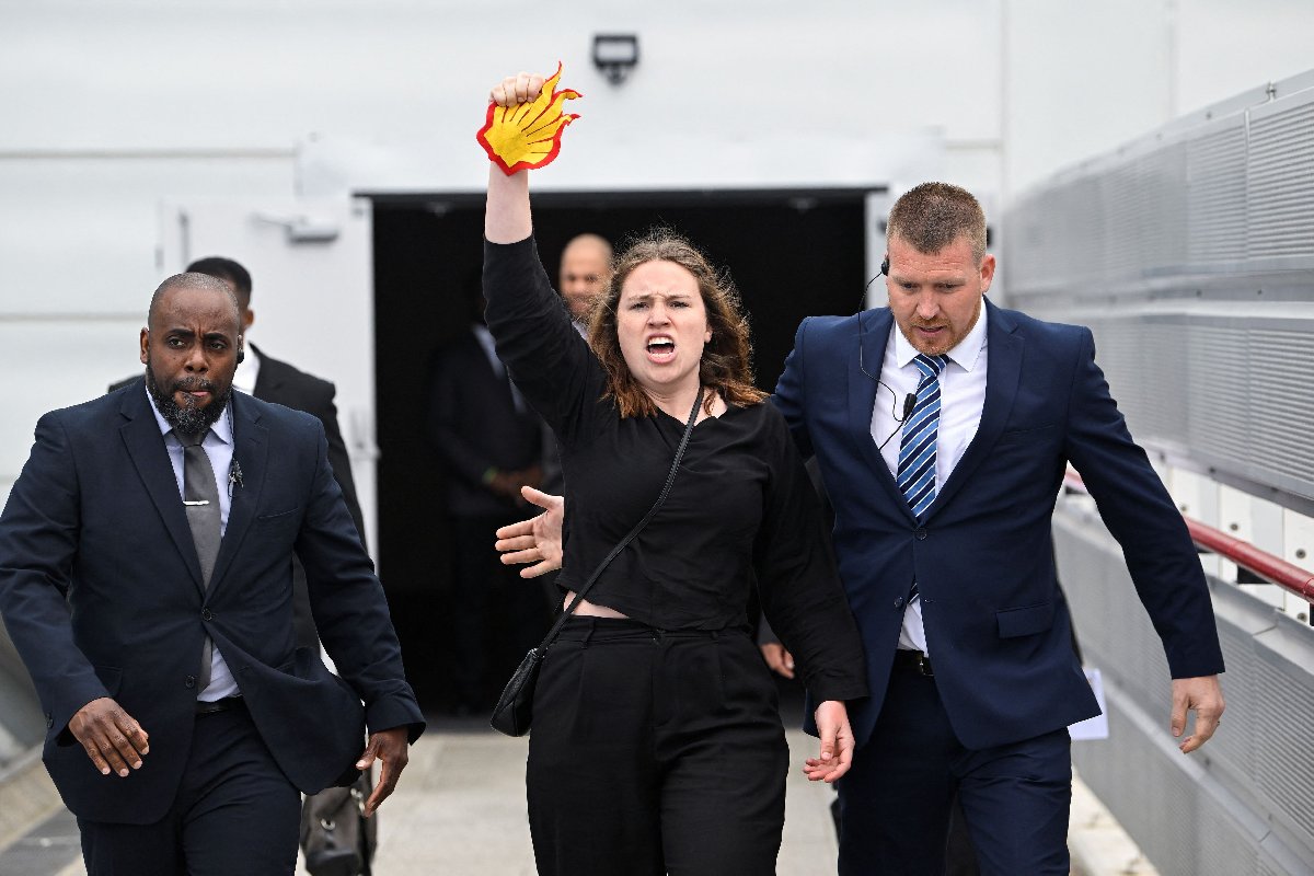 Fosil yakıt karşıtları Londra’da Shell’in yıllık hissedar toplantısını bastı.