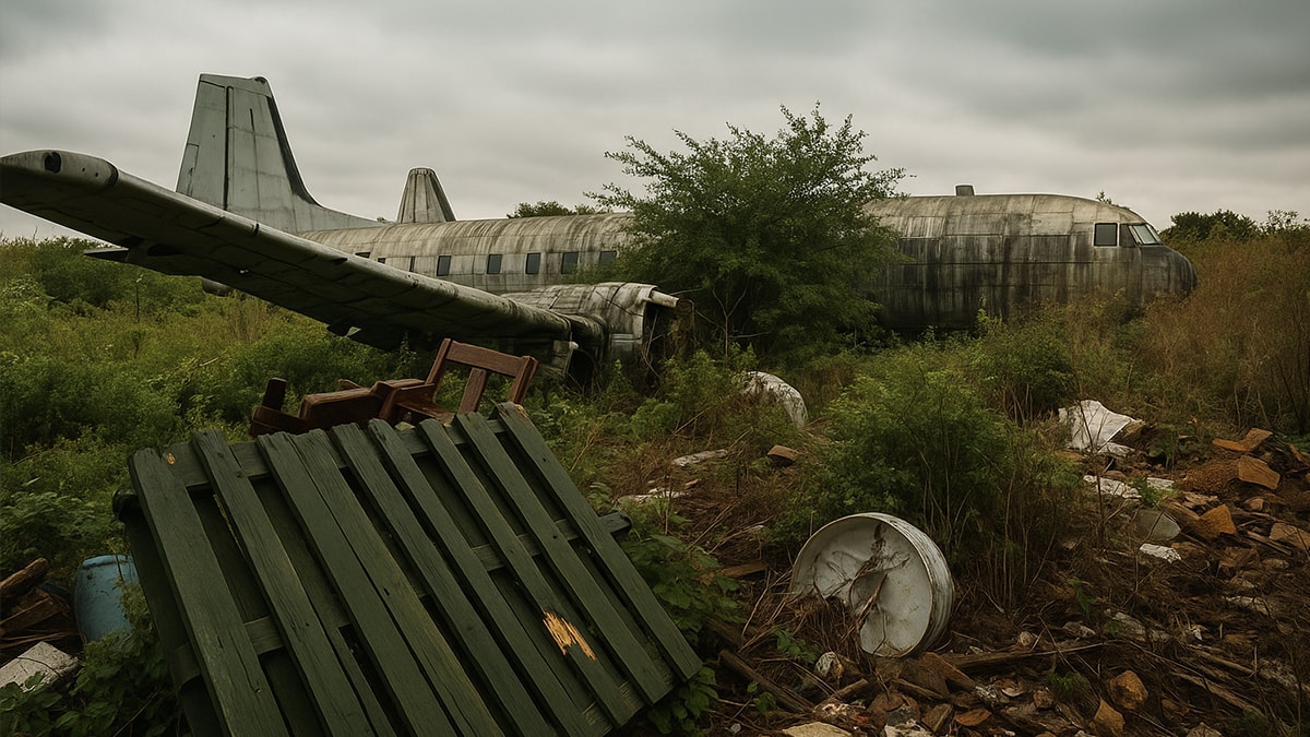 Burada sadece uçaklar terk edilmemiş çalılıkların arasında eski televizyonlardan koltuklara kadar çeşitli eşyalar da rastgele bırakılmış durumda.