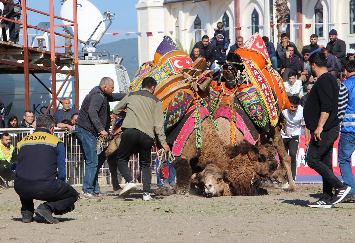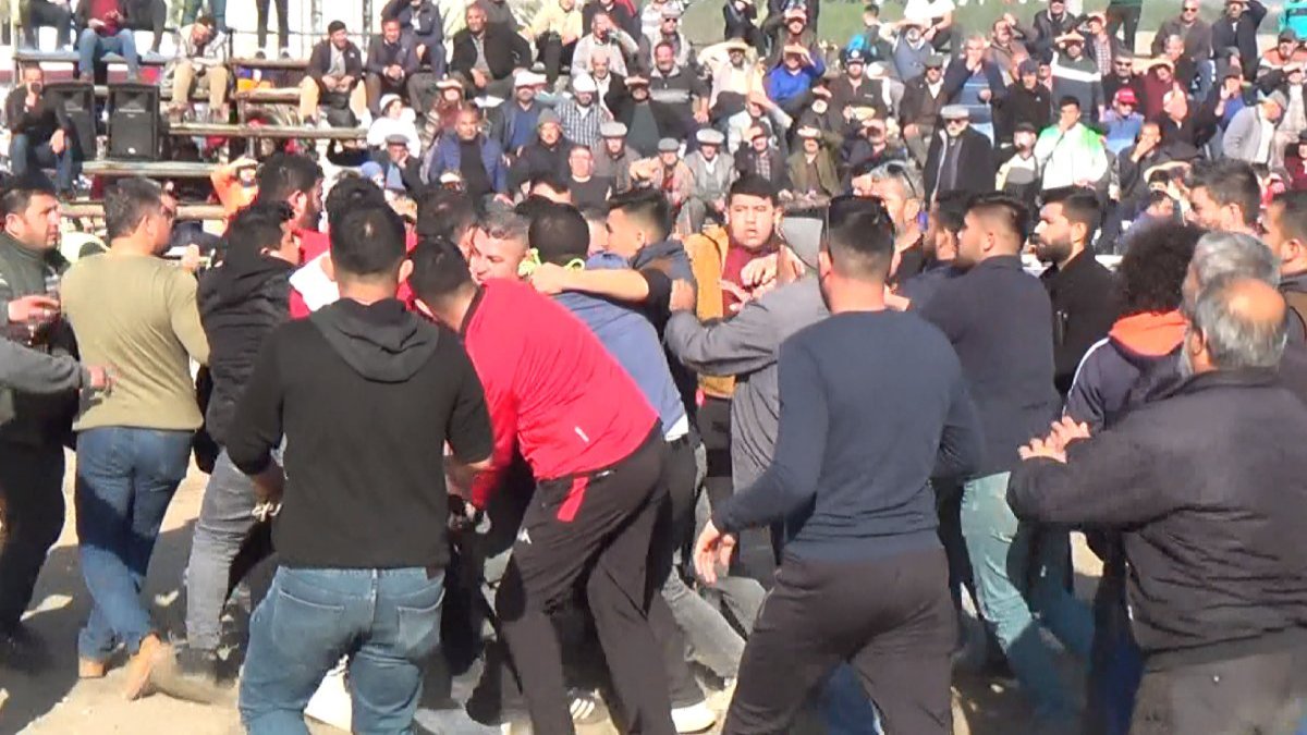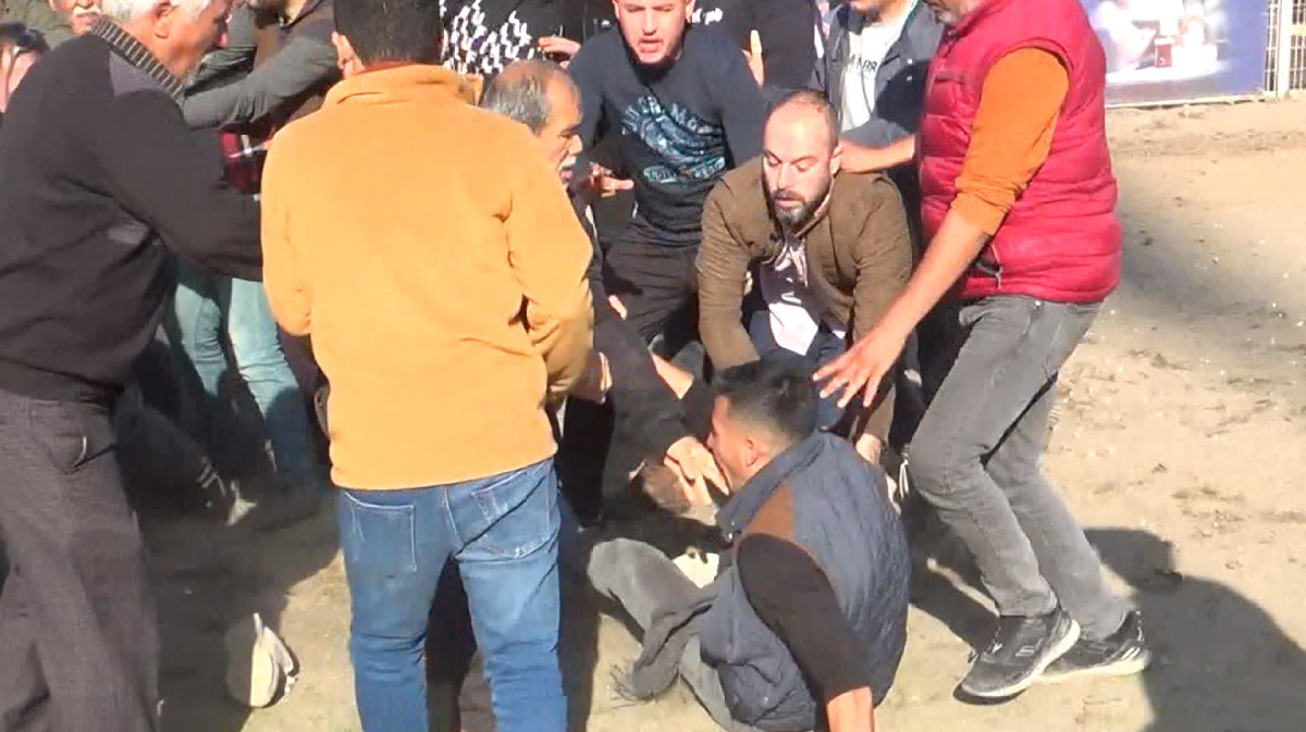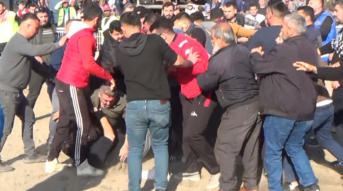 Güreşler sürerken 2 deve sahibi kural ihlali yapıldığı gerekçesiyle tartıştı. Birbirini yumruklayan deve sahipleri ile beraberindekiler arasında arbede yaşandı.