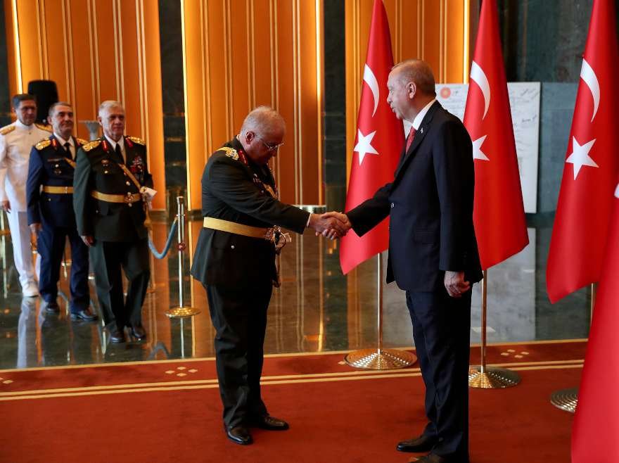 Cumhurbaşkanı Recep Tayyip Erdoğan, Cumhurbaşkanlığı Külliyesi'nde 30 Ağustos Zafer Bayramı kutlamaları kapsamında tebrikleri kabul etti.