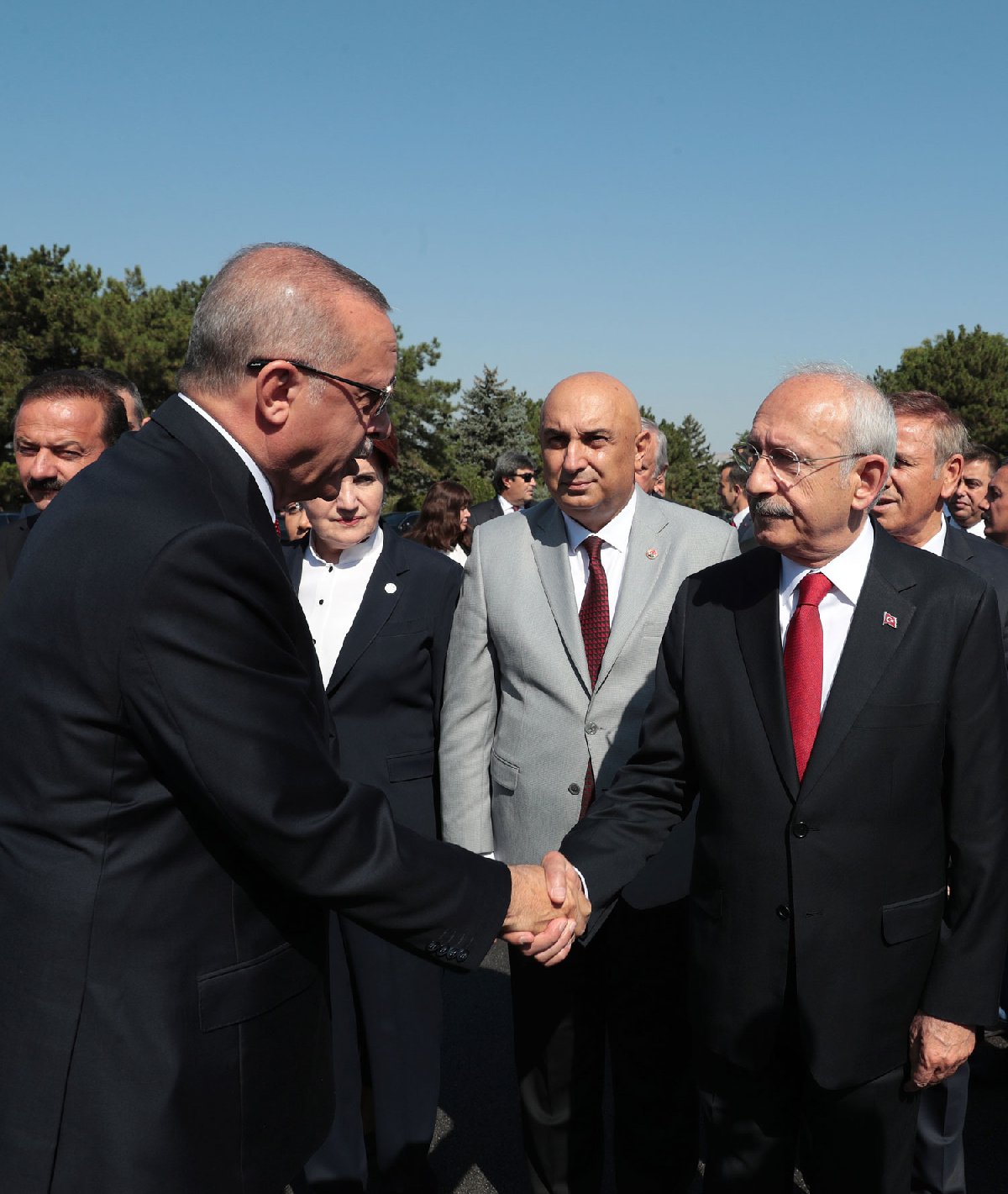 Cumhurbaşkanı Erdoğan, CHP Genel Başkanı Kemal Kılıçdaroğlu ile selamlaştı.