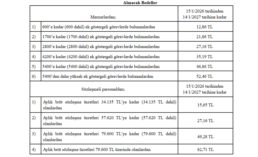 Sözleşmeli personelden alınacak yemek ücretleri, aylık brüt sözleşme ücretlerine göre kademelendirildi: