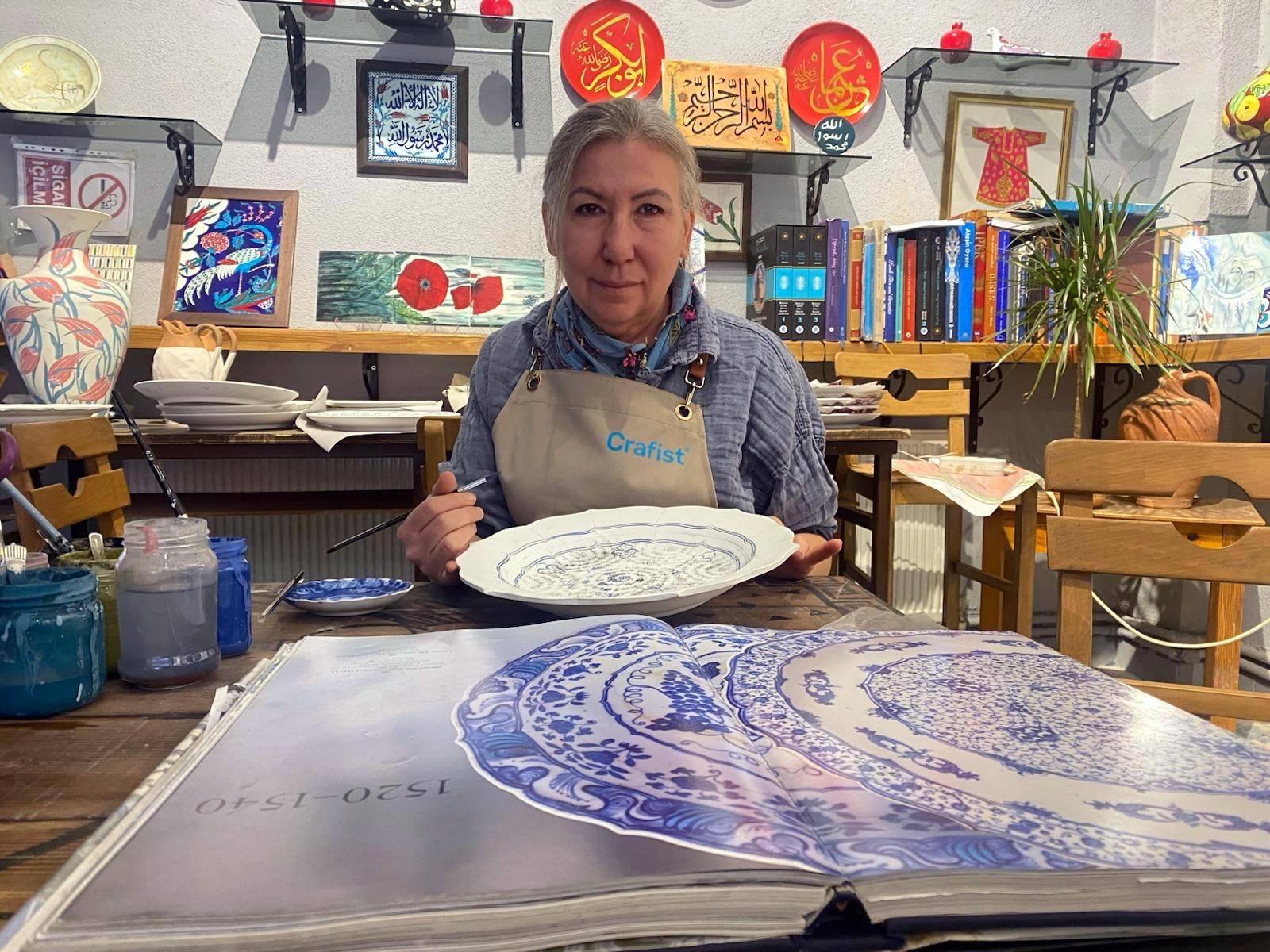 Dede mesleği çömlekçiliği, çini sanatına taşıyan ve şu an Papa’ya hediye edeceği eserin yanı sıra 15’inci yüzyıla özgü Haliç işi çini tabak da yapan Mesude Künen, mesleğini icra ettiği atölyeye de dedesinden esinlenerek ‘Dedemin Elleri’ adını verdiğini belirtti.