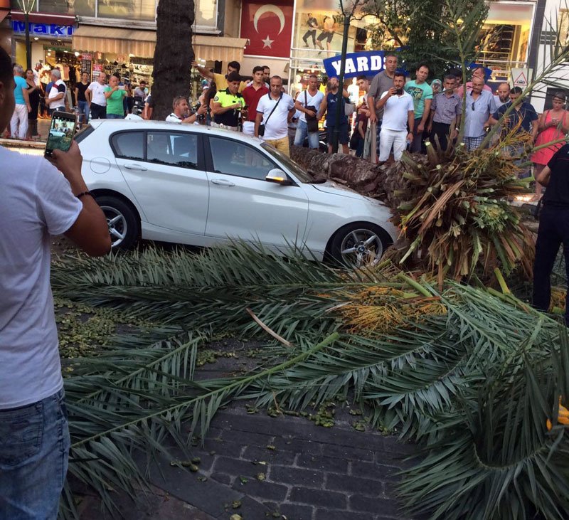 Olayı gören çevredeki vatandaşlar ve diğer sürücüler direksiyon başında şoka giren kadın sürücüyü araç içerisinden çıkardı. İhbar üzerine olay yerine gelen polis ekipleri yolu trafiğe kapatırken, yine polis ve itfaiye ekipleri devrilen hurma ağacını keserek yol kenarına sürükledi. Arabasında maddi hasar oluşan kadın sürücünün ise olayı yara almadan atlattı.
