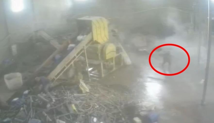Osmangazi ilçesindeki bir geri dönüşüm tesisinde kaynak ustası olarak çalışan Ahmet Köse, kaynak yaptığı sırada arkasındaki 20 tonluk su varili devrildi. Devrilen su varilinin altında kalmaktan son anda kurtulan Köse, akan su nedeniyle bir süre sürüklendi. O anlar, iş yerinin güvenlik kamerasına yansıdı.