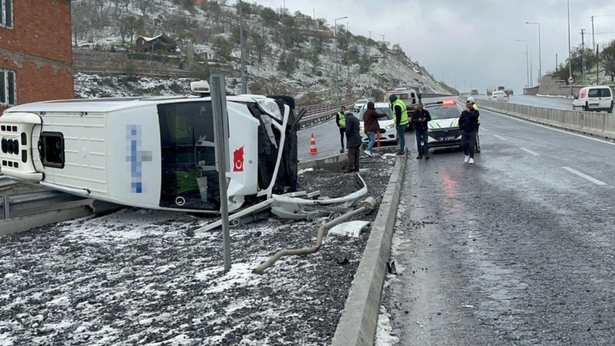 Bu sırada aynı istikamette seyreden ve plakası yurt dışına kayıtlı olan bir otomobil de devrilen minibüse çarptıktan sonra refüje çıktı. Otomobil sürücüsünün kimliği henüz öğrenilemedi.