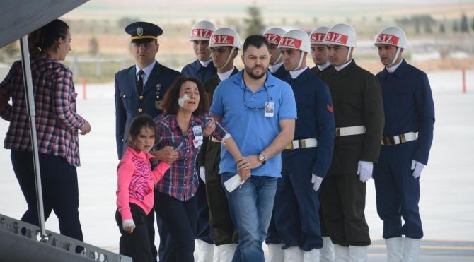 Uçaktan ilk olarak, Şehit Uzman Çavuş Ayyıldız ile son yolculuklarını yapan ve aynı saldırıda yüzünden yaralanan eşi Nurçin Ayyıldız ve kolundan yaralanan kızı Ecrin Ayyıldız indi. Nurçin Ayyıldız, kendilerini bekleyen yakınlarına sarılıp ağladı. Ayakta durmakta güçlük çeken Nurçin Ayyıldız, tekerlekli sandalyeye alınarak, araca götürülmek istendi. Nurçin Ayyıldız bu sırada, ''Allah’ım bu nasıl bir şey. Ne olur götürmeyin beni. Ben iyiyim. Kocamı istiyorum ben. Nereye götürüyorsun'' dedi.