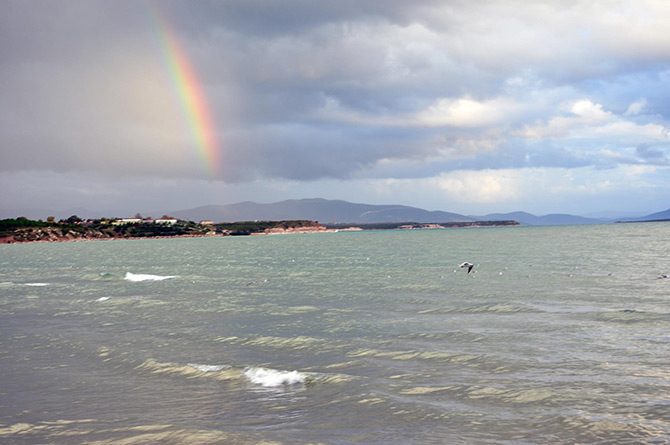 Öte yandan hortumun etkisini yitirmesi sonrası Altınkum Plajı'nda gökkuşağı oluştu. Gökkuşağının belirgin renkleri, bulutların önüne gelmesiyle kısa sürede kayboldu. Hortumla heyecanlanan Didimliler, gökkuşağını çıkmasıyla rahatladı.