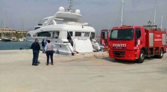 Didim D-Marin'de bugün saat 18.00 sıralarında marinada bağlı bulunan 'M/Y Packagers' adlı 32 metrelik lüks mega yatta yangın çıktı. Yatın makine dairesinden dumanların yükseldiği gören tekne mürettebatı, durumu itfaiyeye bildirdi. Kısa sürede marinaya gelen itfaiye ekipleri, alevlere müdahale etti, güverteye sıçramadan yangını kontrol altına aldı. Yatın motor kısmında büyük çapta maddi hasar meydana geldi.