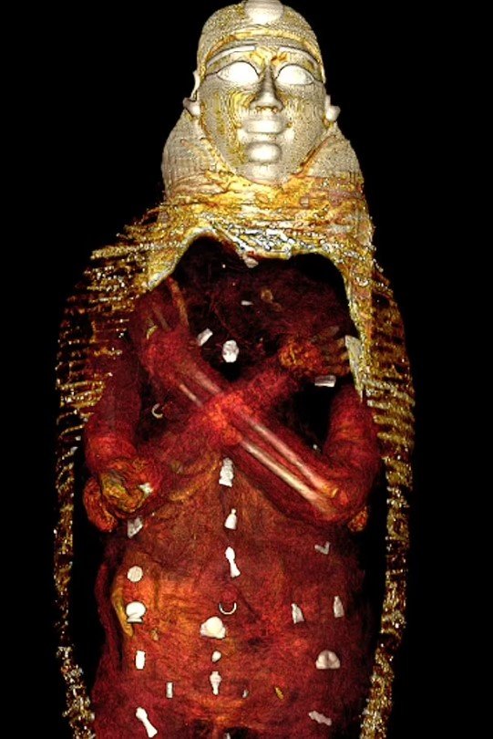 Kahire Üniversitesi Tıp Fakültesi'nde radyoloji profesörü olan Sahar Saleem liderliğindeki bilim insanlarından oluşan bir ekip, dijital tarama ile inceledikleri mumyanın ve ailesinin zengin ve yüksek sosyal statüye sahip olduğu sonucuna vardı; çünkü vücudu 49 değerli muska ile süslenmişti.