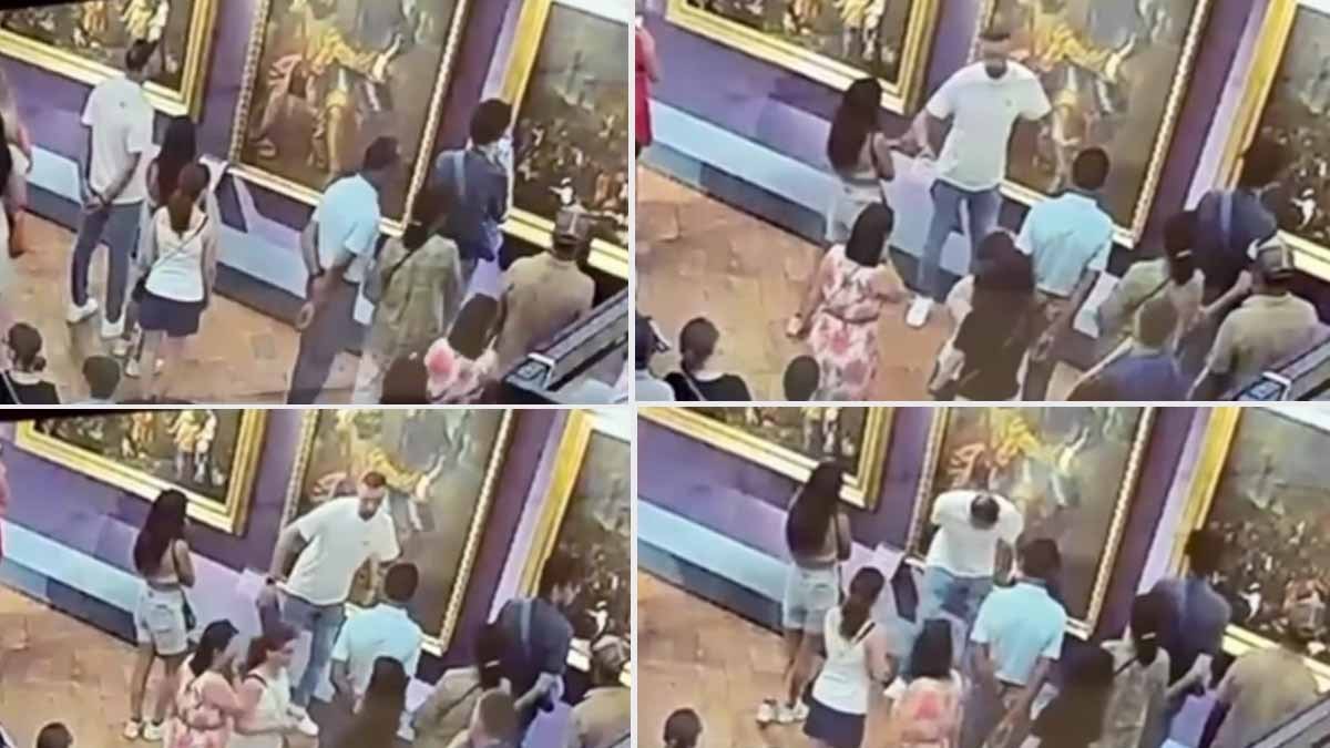 Güvenlik kamerası görüntülerine yansıyan olayda bir turist, Anton Domenico Gabbiani'nin Toskana Büyük Prensi Ferdinando de' Medici Portresi önünde selfie çekerken poz vermeye çalıştı.