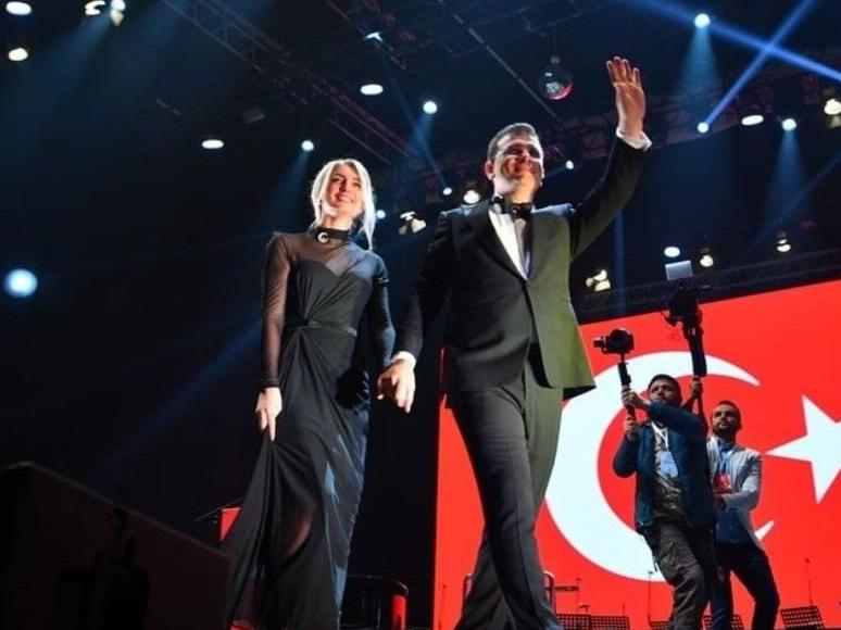 İstanbul Büyükşehir Belediye Başkanı Ekrem İmamoğlu ve eşi Dilek İmamoğlu, dün akşam Sultanahmet Meydanı'nda düzenlenen Cumhuriyet Bayramı kutlamalarına katıldı. Yıldırım Mayruk ve Barbaros Şansal imzalı siyah uzun bir elbise giyen İmamoğlu, zarafetiyle göz doldurdu.