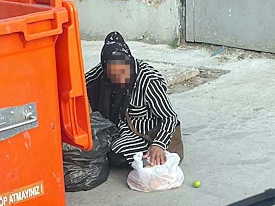 Eyüpsultan’da Göktürk Kemerburgaz yolunda bir dilenci, çöp konteynerini karıştırarak topladıkları ekmekleri yiyormuş gibi yaparken yakalandı.